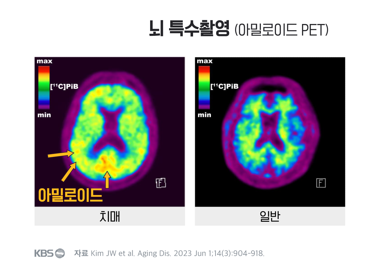 ½ÇÁ¦ Ä¡¸Å ȯÀÚÀÇ ³ú¸¦ Ư¼ö ¿µ»ó(¾Æ¹Ð·ÎÀ̵å PET)À¸·Î ÃÔ¿µÇÏ¸é ³ú ÇÇÁú ºÎÀ§¿¡ ³ë¶õ»öÀ¸·Î ²Ë Âù ºÎºÐÀÌ °üÂûµË´Ï´Ù. ¹Ù·Î ¾Æ¹Ð·ÎÀ̵尡 ÃàÀûµÈ ºÎºÐÀÔ´Ï´Ù. Ä¡¸Å°¡ ¾ø´Â ÀϹÝÀÎÀÇ ³ú¿¡¼´Â ÀÌ·± ½ÅÈ£°¡ °ÅÀÇ °üÂûµÇÁö¾Ê½À´Ï´Ù. Áß³â ÀÌÈÄ ¾Æ¹Ð·ÎÀ̵尡 ½×ÀÌ´Â °ÍÀ» ¾ïÁ¦ÇÒ ¼ö ÀÖ´Ù¸é Ä¡¸Å°¡ ÁøÇàµÇ´Â °É Áö¿¬½Ãų ¼ö ÀÖ´Ù°í ±â´ëÇÏ´Â ÀÌÀ¯ÀÔ´Ï´Ù.